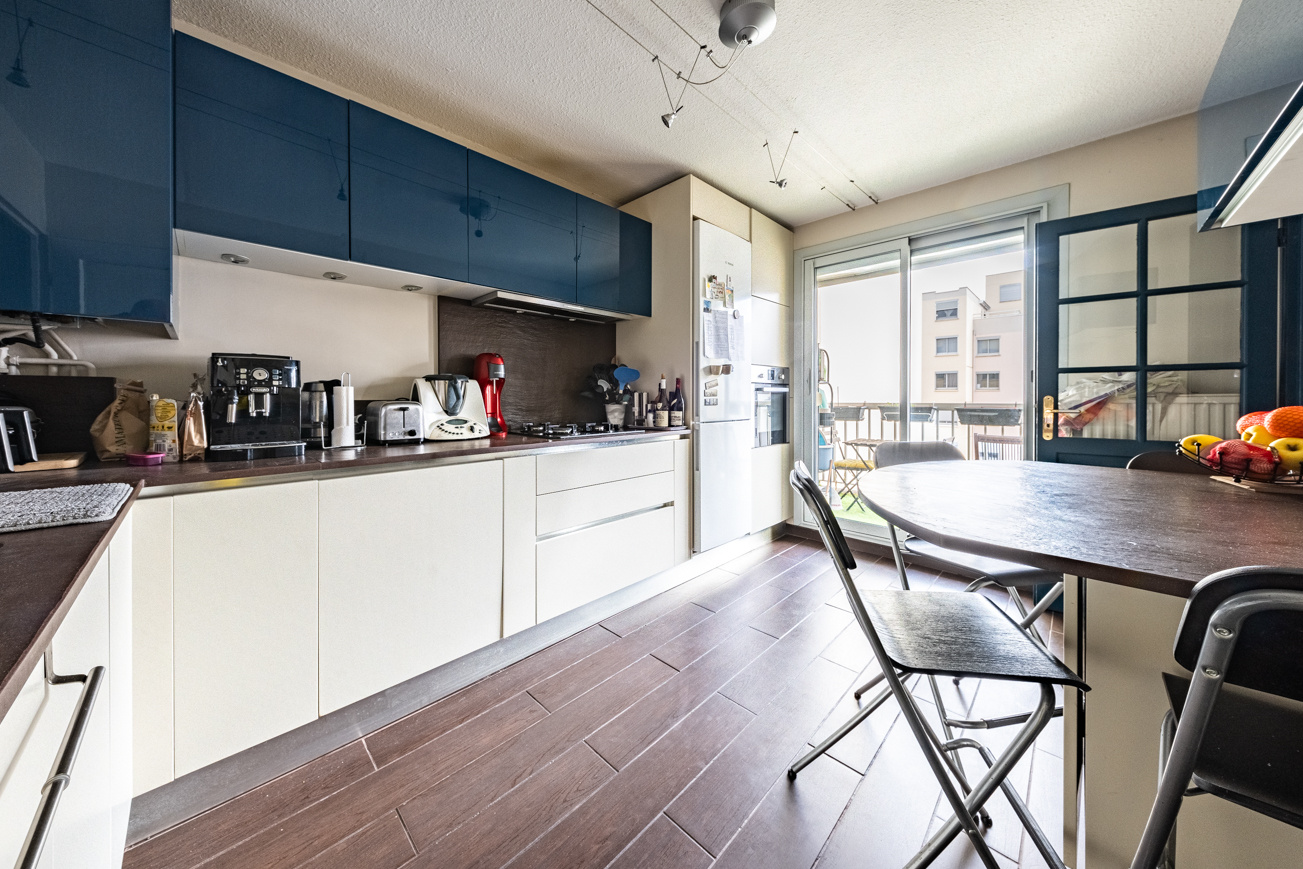 L’entrée dessert un séjour de 30 m2, ouvrant sur un large balcon, ainsi qu’une cuisine entièrement équipée.