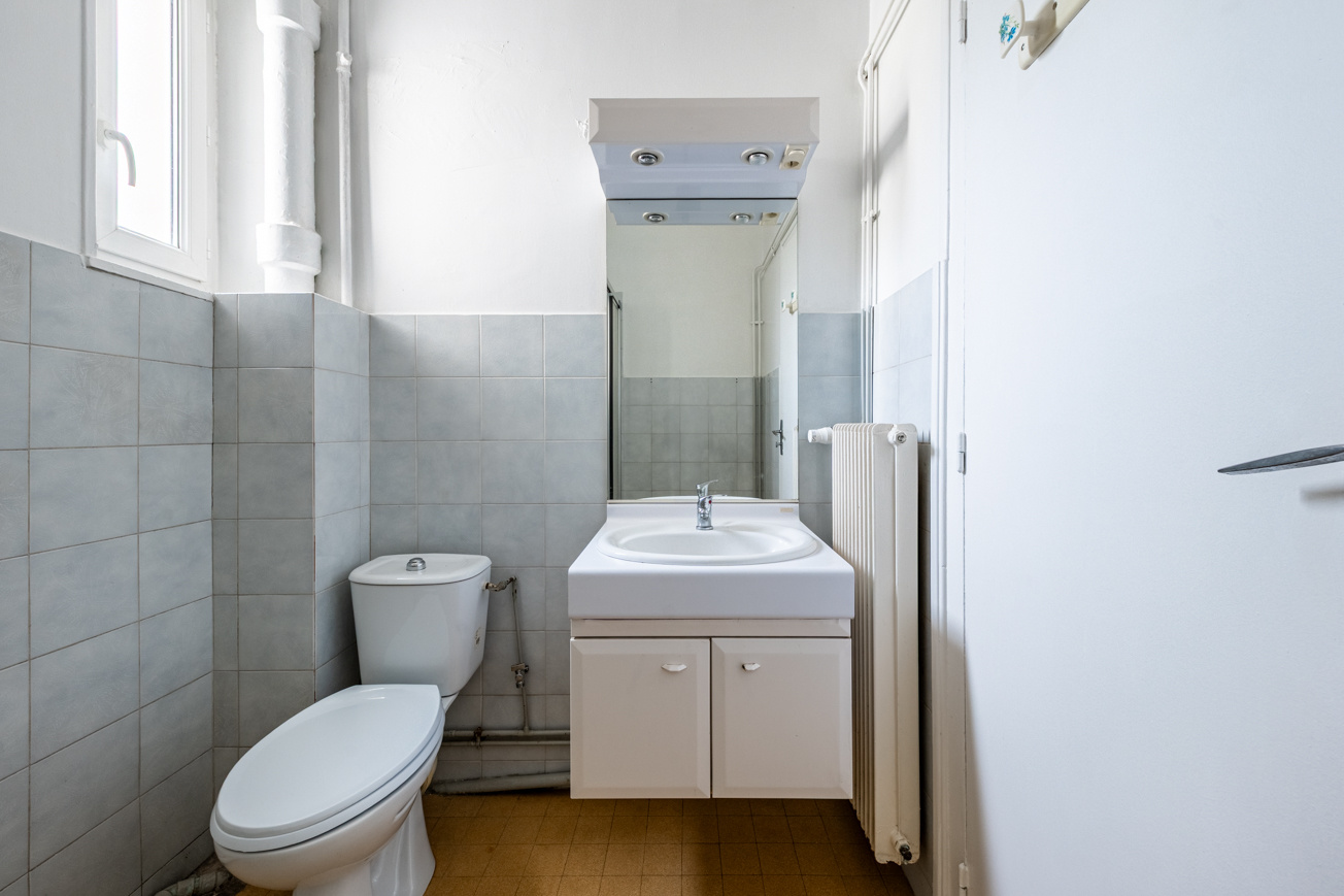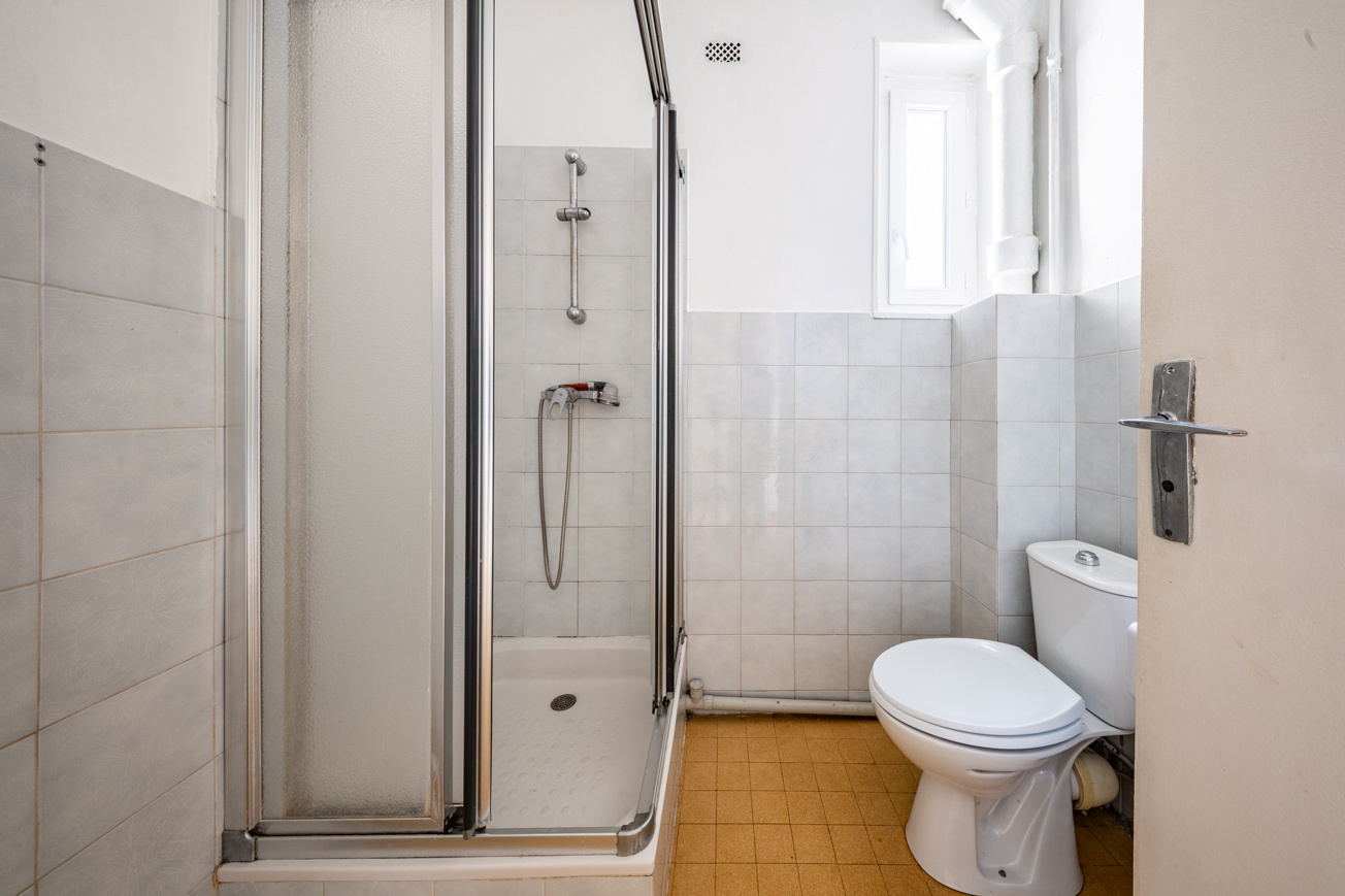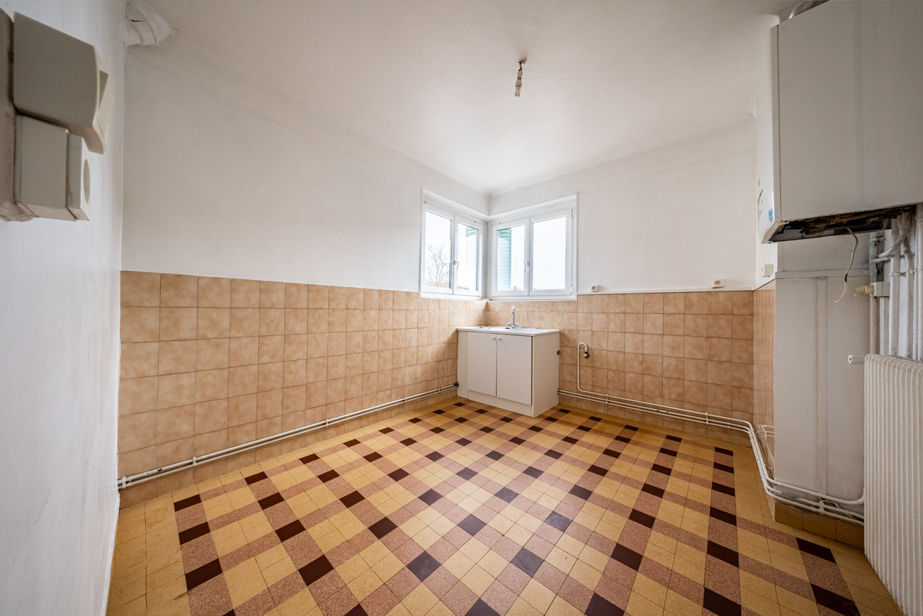 La cuisine, de belle taille, dispose d’une double exposition Est / Nord et reste à aménager selon vos envies. La salle d’eau avec WC bénéficie d’une fenêtre