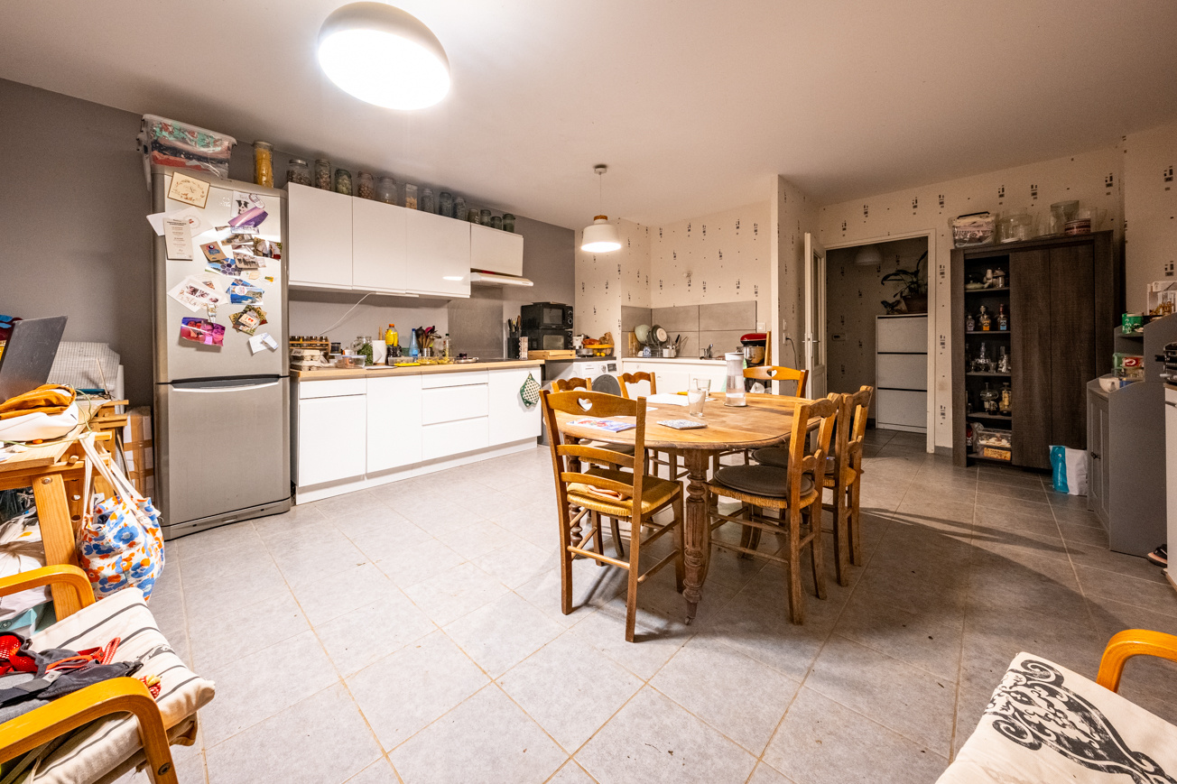 Le séjour lumineux avec cuisine ouverte s’ouvre sur une terrasse et un jardin privatif, parfaits pour profiter du calme environnant.