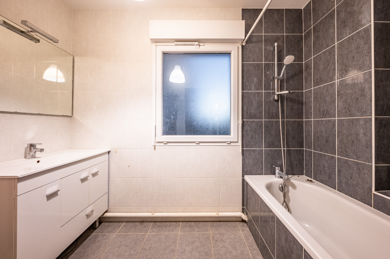 Côté nuit, deux chambres, une salle de bains avec fenêtre et des WC séparés. Le chauffage collectif au gaz est équipé de répartiteurs.